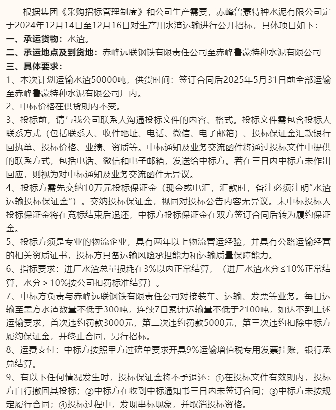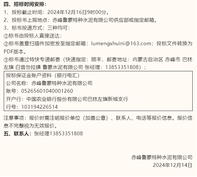 【招標(biāo)公告】魯蒙水泥