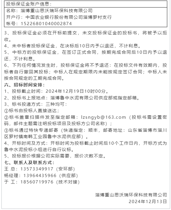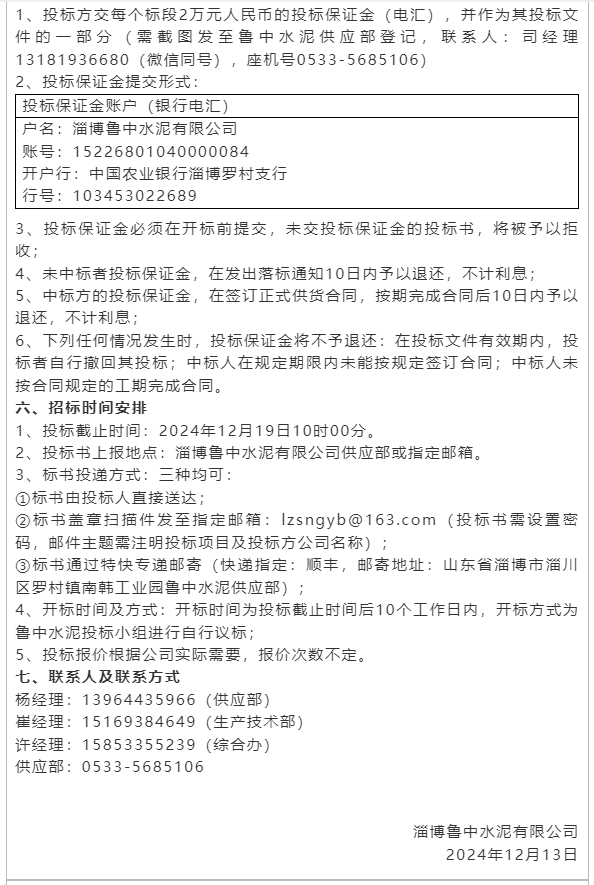 【招標公告】魯中水泥、重山思沃瑞