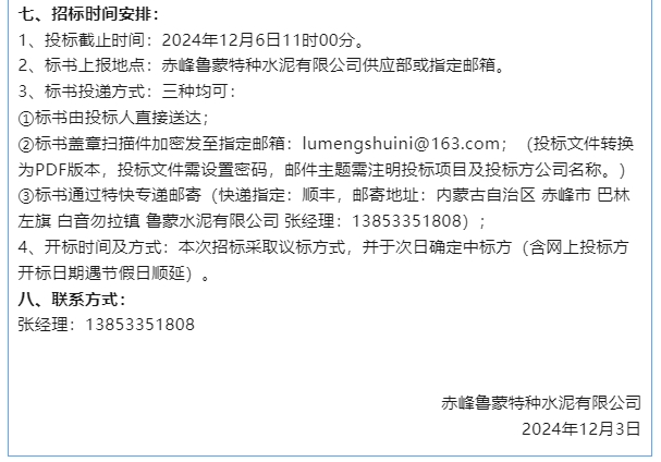 【招標公告】魯蒙水泥
