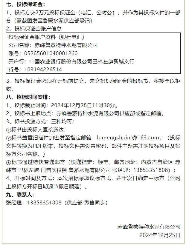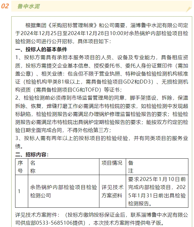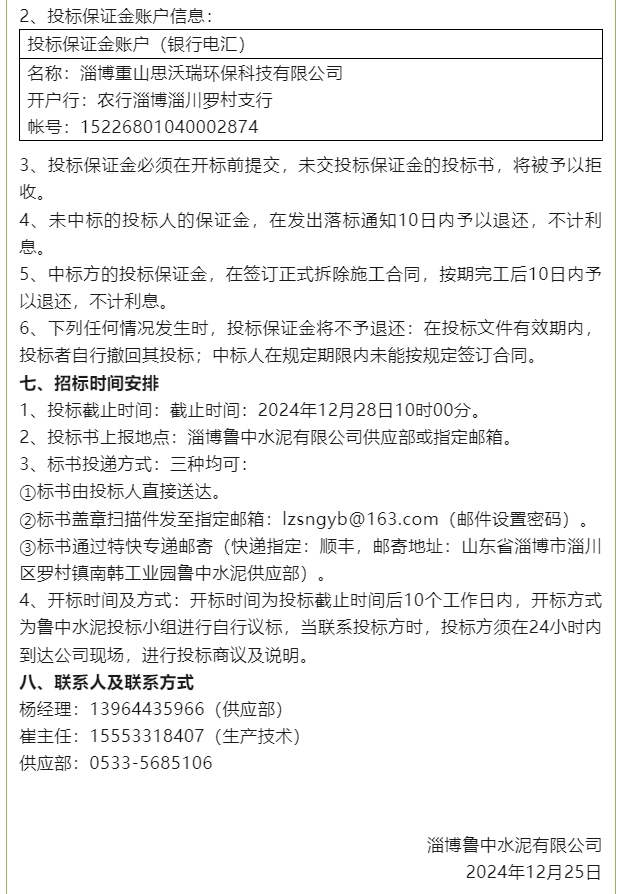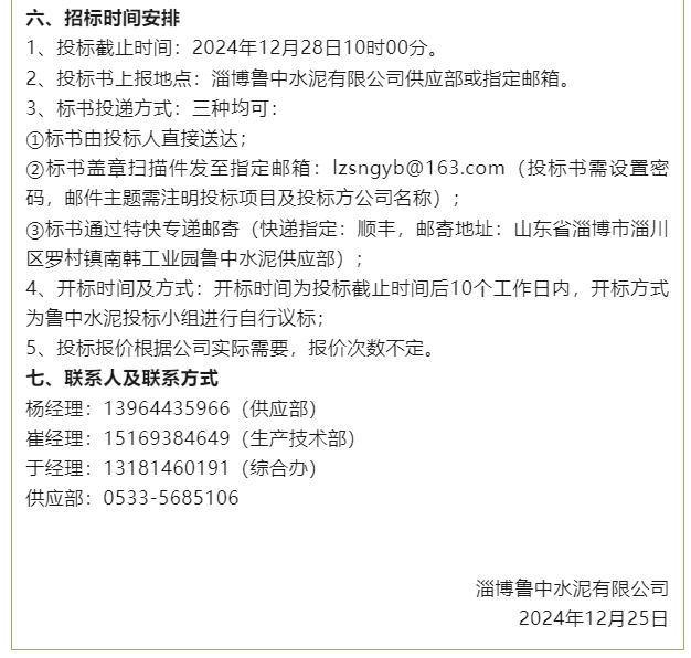 【招標公告】魯蒙水泥、魯中水泥、重山思沃瑞
