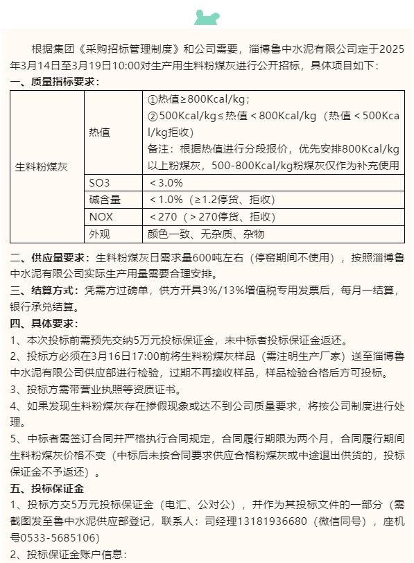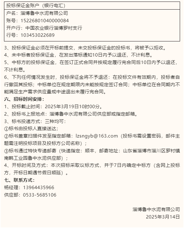 【招標(biāo)公告】魯中水泥