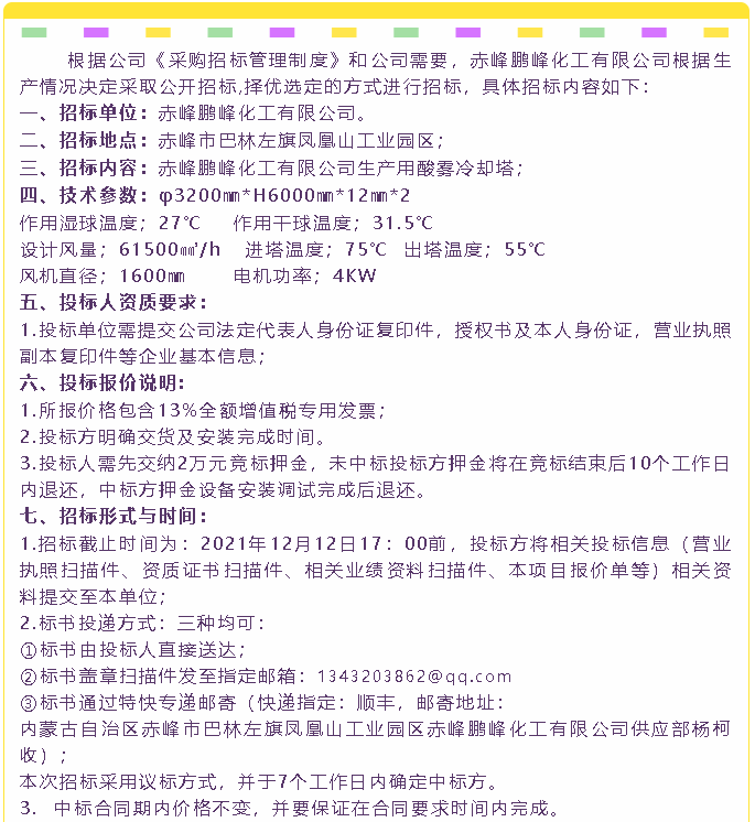 【招標(biāo)公告】鵬峰化工