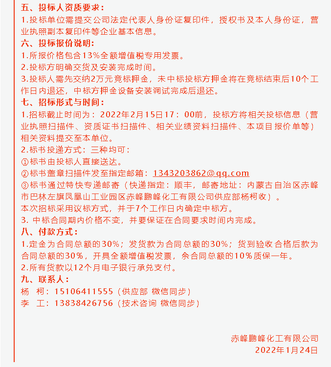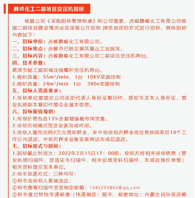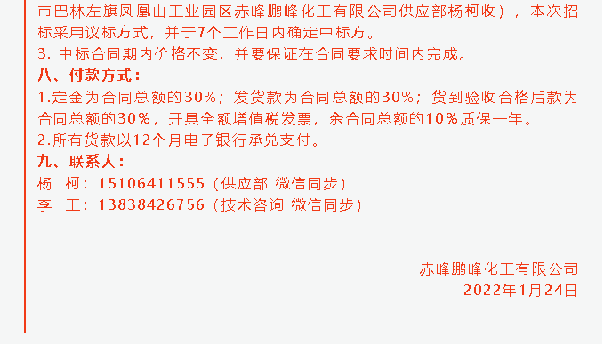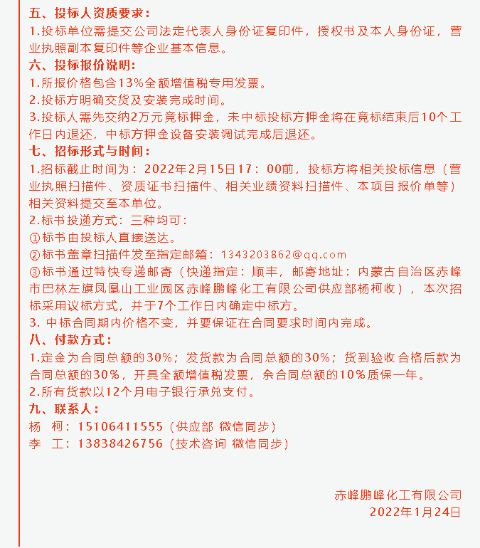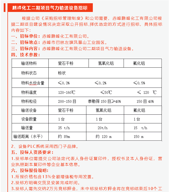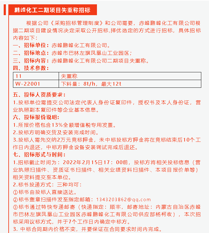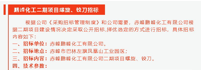 【招標公告】鵬峰化工