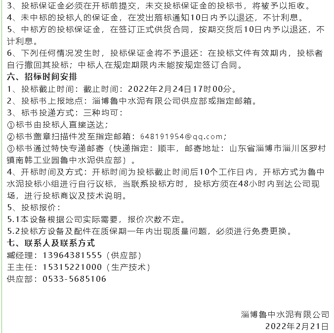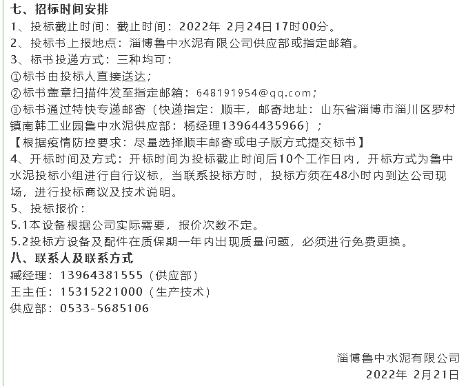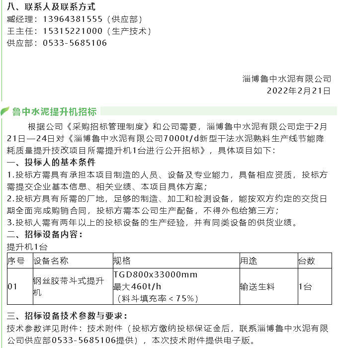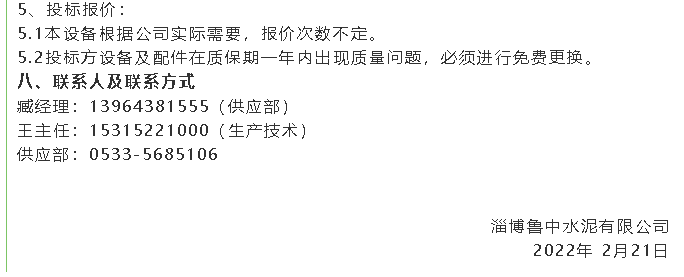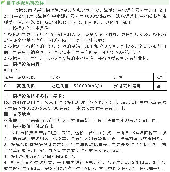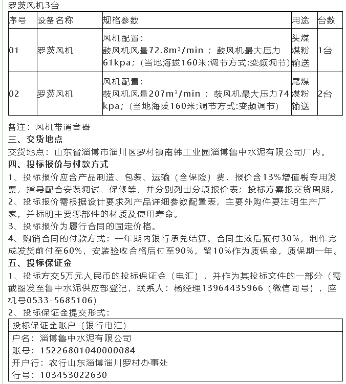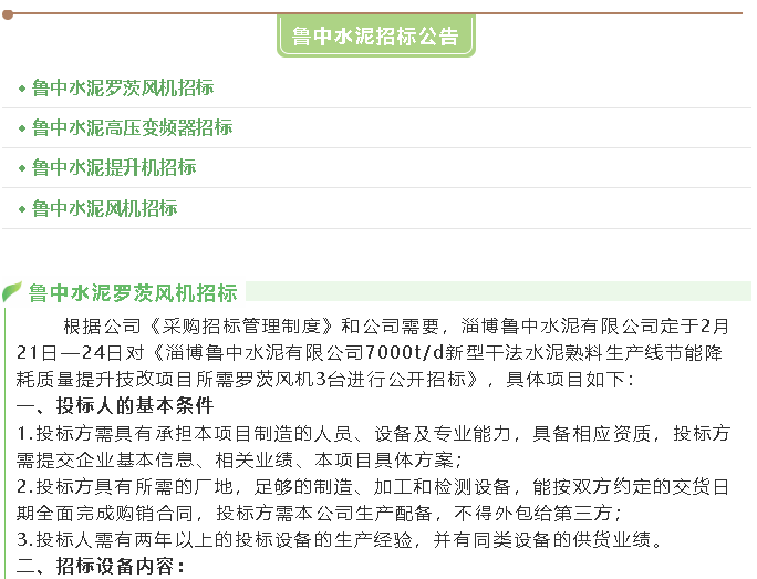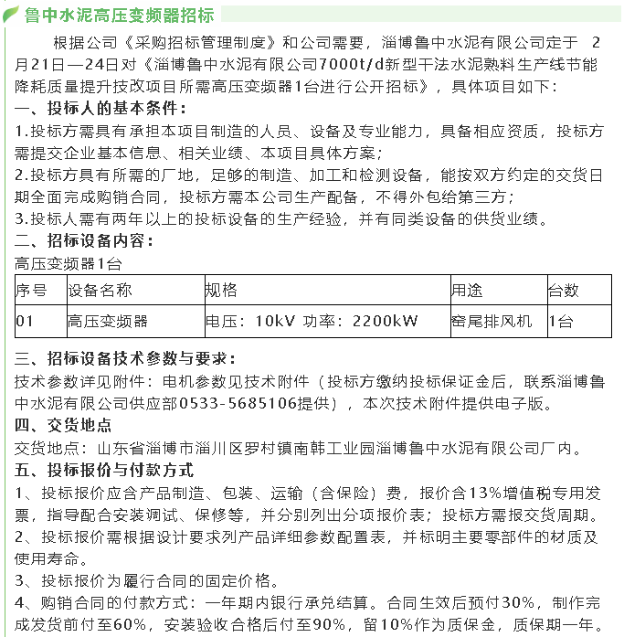 【招標公告】魯中水泥羅茨風機、高壓變頻器、提升機、風機招標