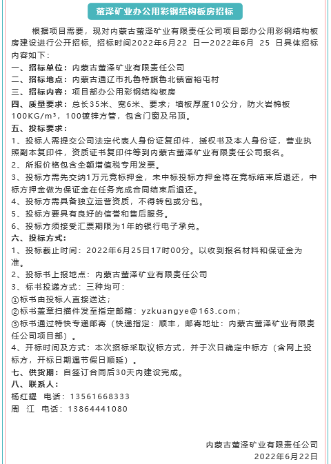 【招標公告】魯中水泥煙煤招標、螢澤礦業(yè)辦公用彩鋼結(jié)構(gòu)板房、項目建設(shè)監(jiān)理招標