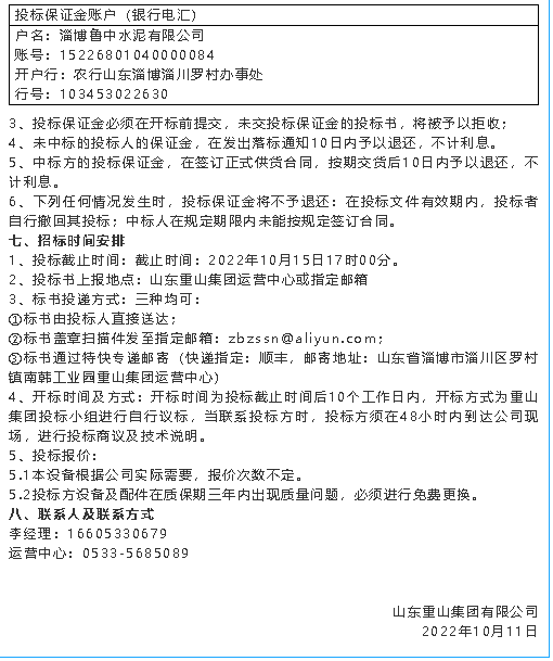 【招標(biāo)公告】重山集團(tuán)、魯蒙水泥、黃驊三陽、重山光電