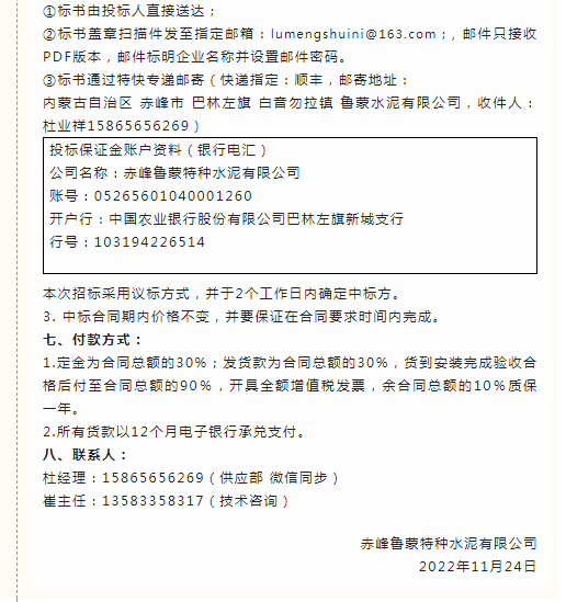 【招標(biāo)公告】魯蒙水泥、魯中水泥