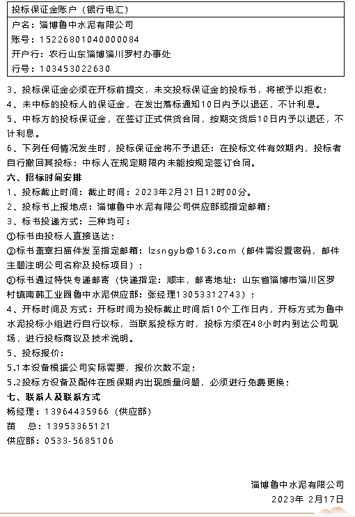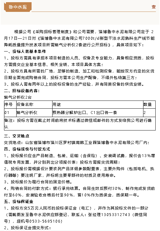 【招標(biāo)公告】魯中水泥、重山思沃瑞