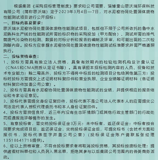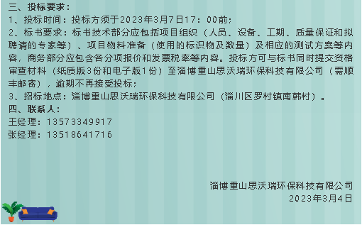 【招標(biāo)公告】重山思沃瑞