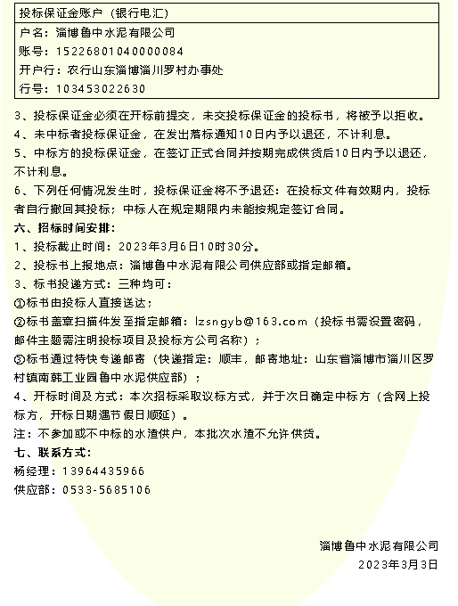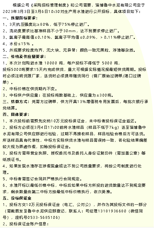 【招標(biāo)公告】魯中水泥