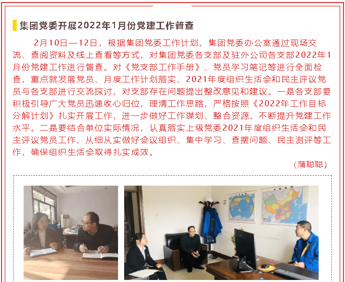 集團(tuán)黨委開展2022年1月份黨建工作督查