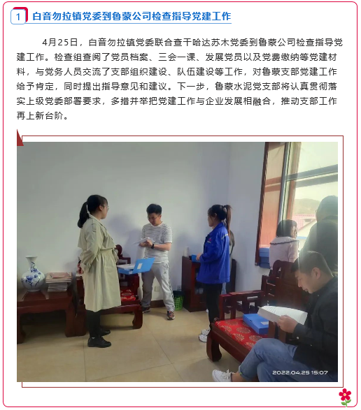 【黨建】白音勿拉鎮(zhèn)黨委到魯蒙公司檢查指導(dǎo)黨建工作、魯蒙水泥黨支部開(kāi)展主題黨日活動(dòng)