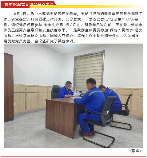 【黨建】集團(tuán)機(jī)關(guān)黨支部、魯中水泥黨支部召開支委會
