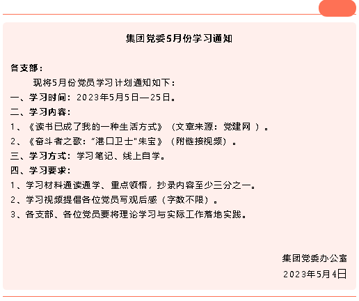 【通知】集團黨委5月份學(xué)習(xí)通知