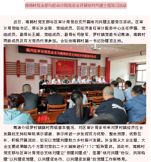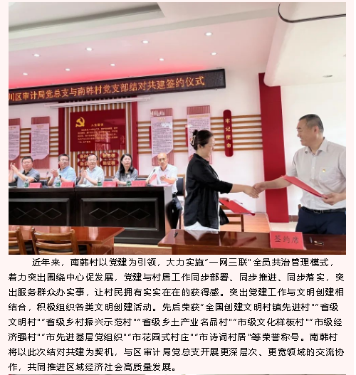 【黨建】南韓村黨支部與區(qū)審計(jì)局黨總支開展結(jié)對共建主題黨日活動(dòng)